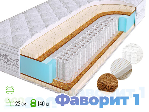 Ортопедический матрас «Фаворит-1», с блоком независимых пружин с дополнительными слоями Копены, поможет убрать избыточное мышечное напряжение, поспособствует улучшению кровообращения. Использование такого матраса обеспечит правильную поддержку опорно-двигательного аппарата, независимо от того в какой позе Вы предпочитаете спать. Матрас «Фаворит-1» создаст благоприятный климат для сна. Специальный кокосовый слой, обеспечит высокую долговечность и прочность матраса. Применяемые материалы совершенно не токсичны, обладают гипоаллергенными свойствами и высокой эластичность, выдерживают длительные и интенсивные нагрузки. Специальный трикотаж чехла, позволяет сохранять уникальные свойства применяемый материалов и слоев волокон, продлевая срок службы матрасов.