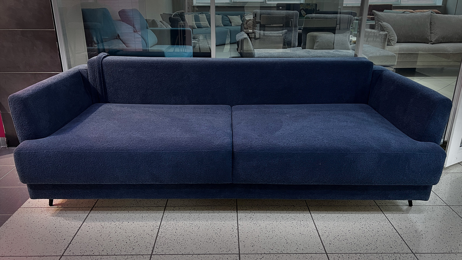 Темно-синий раскладной диван в уютной обивке — стиль и комфорт без ожидания изготовления