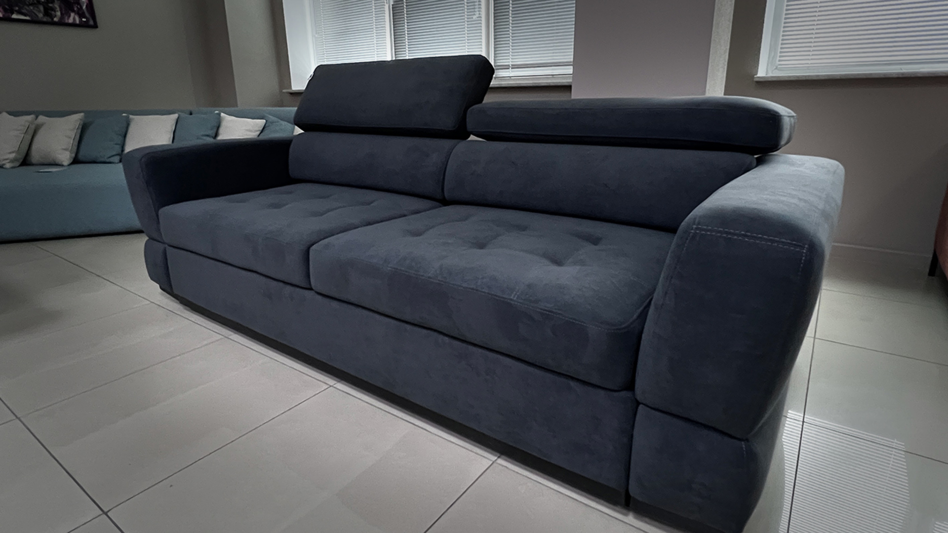 Прямолинейный раскладной диван в сером велюре – готовый к покупке в Минске