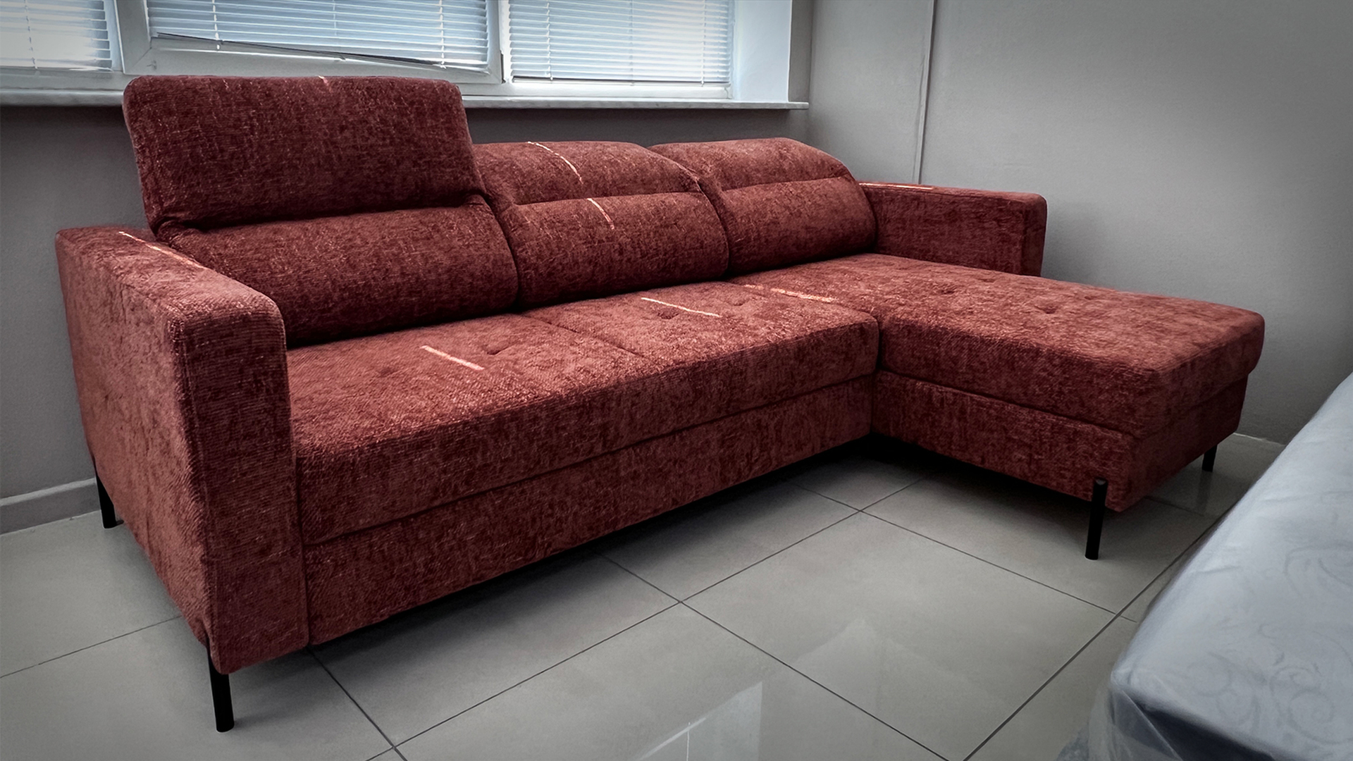 Современный силуэт, приятная текстура обивки и практичные габариты делают этот диван идеальным выбором для городской квартиры или загородного дома. Глубокий кирпично-красный оттенок ткани добавляет интерьеру тепла и характера, а лаконичные формы поддерживают актуальный визуальный баланс.